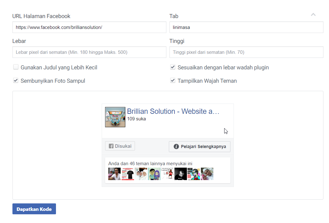 Setelah selesai dikonfigurasi, Anda dapat menekan tombol dapatkan kode untuk mendapatkan kode-kode yang akan di kopi kan ke dalam website/blog kita.